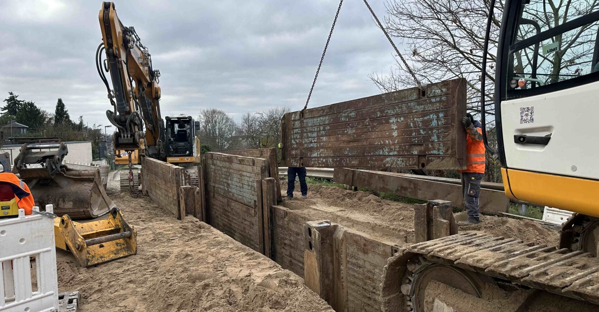 Zur Verlegung sind ca. 1700 qm Oberflächenaufbruch und Wiederherstellung (Beton/ Asphalt/Pflaster), ca. 4000 cbm Aushub mit Wiederverwertung, Tiefe bis 8,5 m, ca. 540 qm Spundwandverbau und ca. 1700 qm Grabenverbau erforderlich.